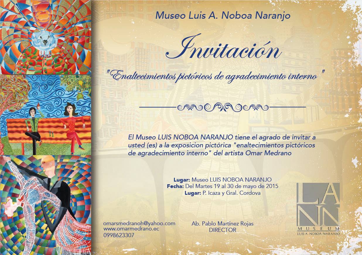 Es la exposición del pintor Omar Medrano, y el Museo Luis Noboa Naranjo los invita a la inauguración que tendrá lugar el próximo martes 19 de mayo a las 19:00. Omar Medrano creció dibujando personaj [...]