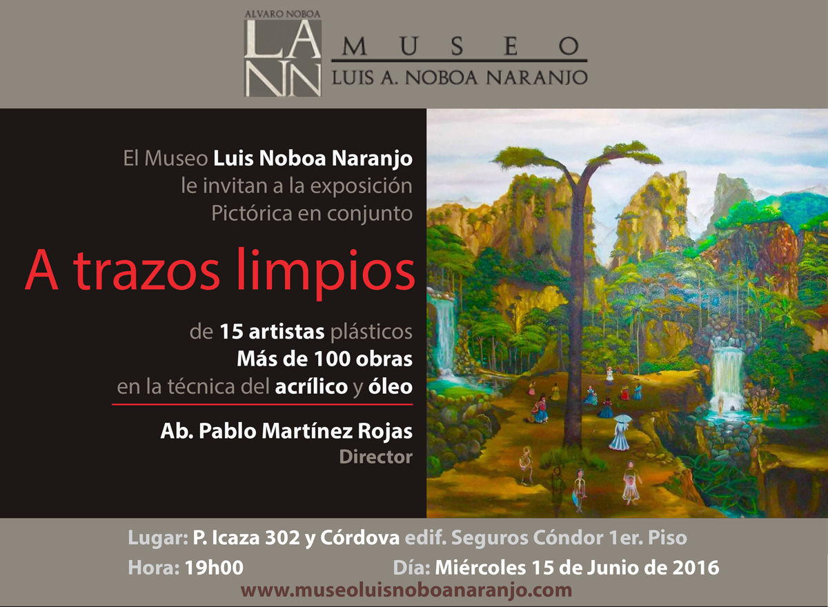 Read MoreGuayaquil, lunes 13 de junio de 2016 BOLETÍN DE PRENSA ‘A TRAZOS LIMPIOS’ presenta alrededor de 100 obras Alrededor de 100 obras formarán parte de la exposición pictórica ‘A TRAZOS LIMPIOS [...]