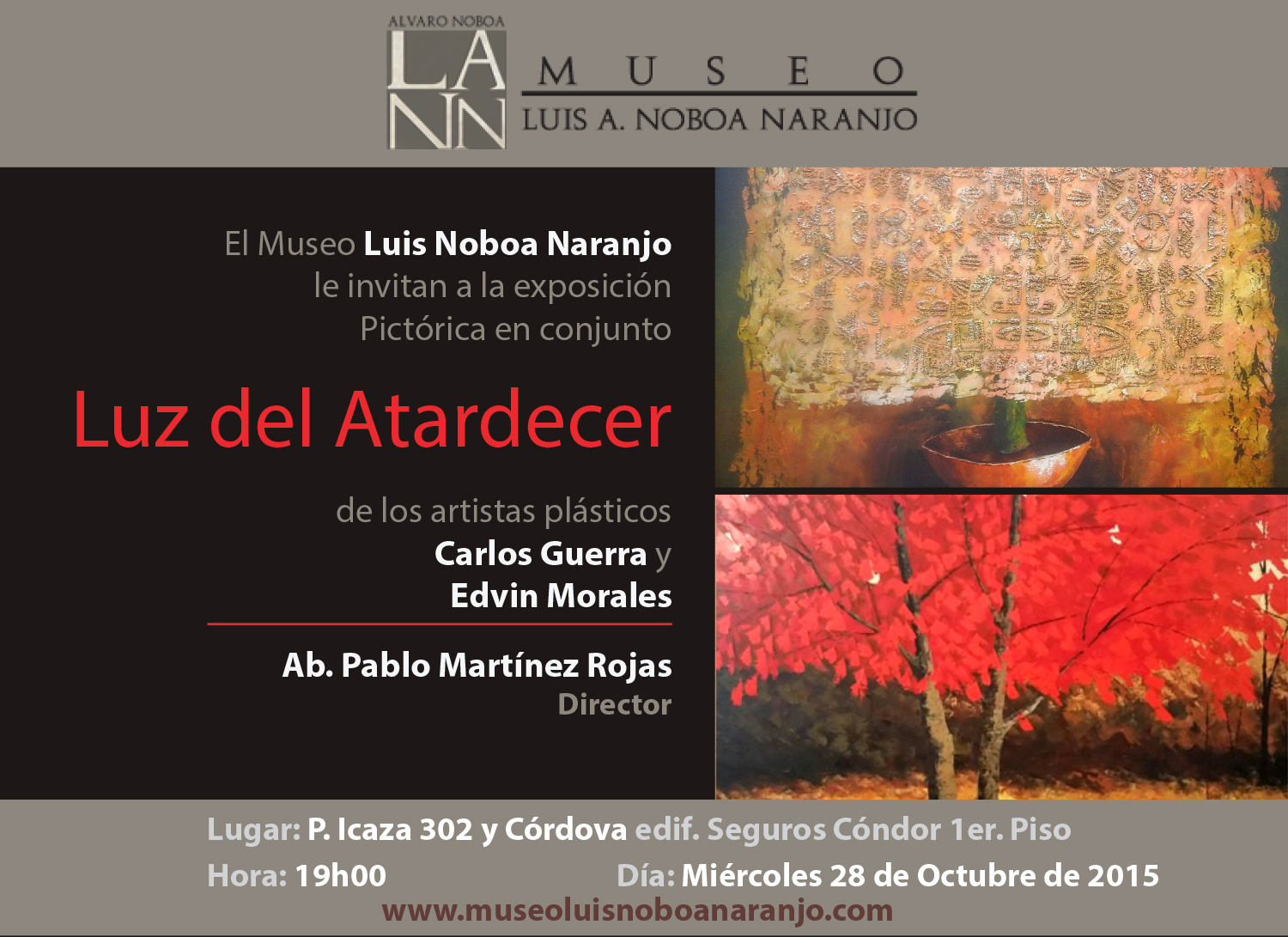 El Museo Luis Noboa Naranjo, invita a los medios de comunicación a la exposición en conjunto que realizarán los artistas Carlos Guerra y Edvin Morales. BOLETIN_MUSEO_ALVARO Guayaquil, miércoles [...]