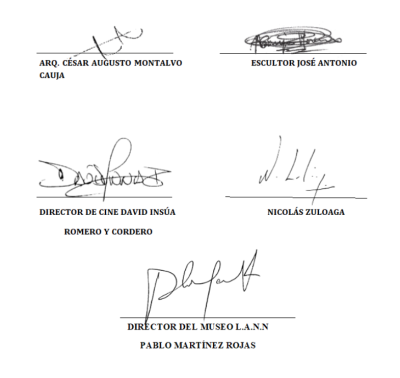 Las firmas de los miembros del jurado seleccionar del concurso de la Bienal Internacional de escultura de Guayaquil ÁLVARO NOBOA PONTÓN del tema El AMOR hemos considerado lo siguiente: